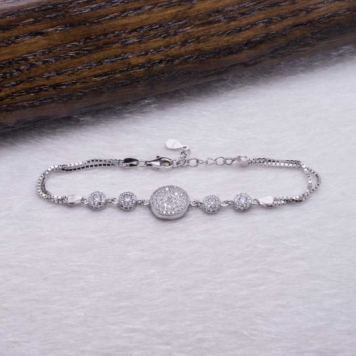 925 Sterling Silver Bracelet with Zircon Stone and Circular Shaped