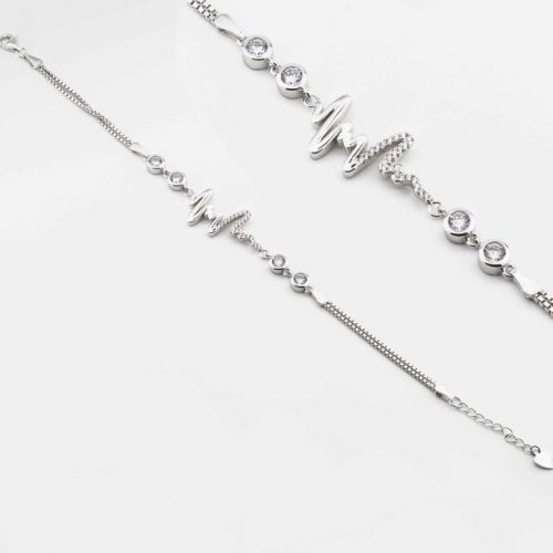 925 Sterling Silver Bracelet with Zircon Stone and Heart Rhythm Design
