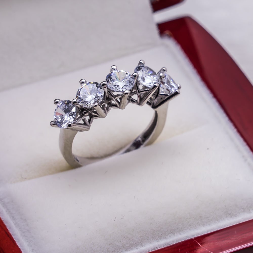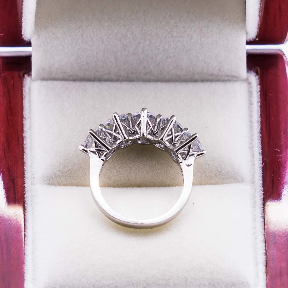 925 Sterling Silver Five Stones Women Ring with Zircon Stone