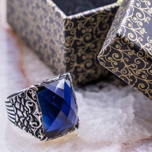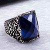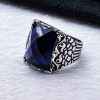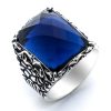 925 Sterling Silver Ring for Men with Blue Zircon Stone