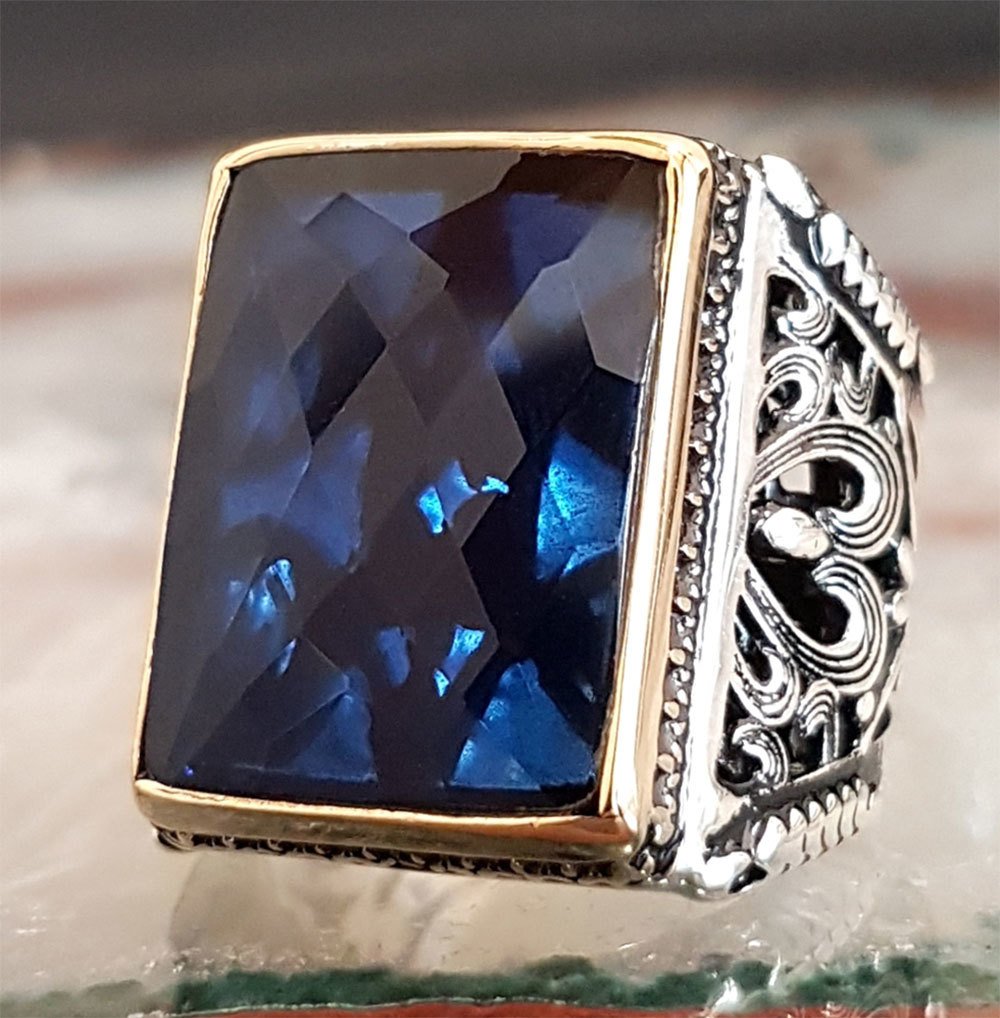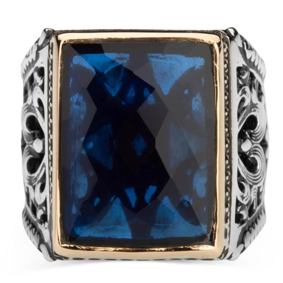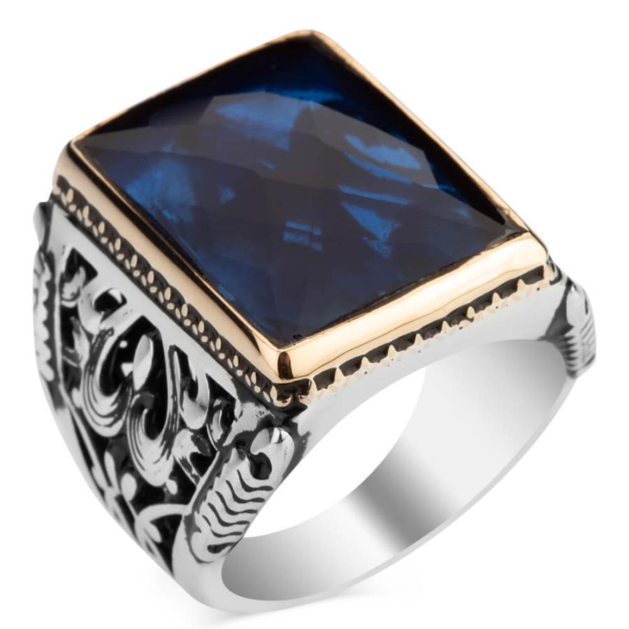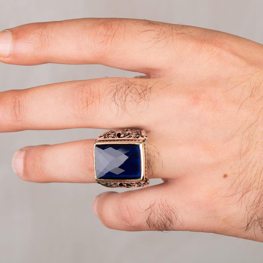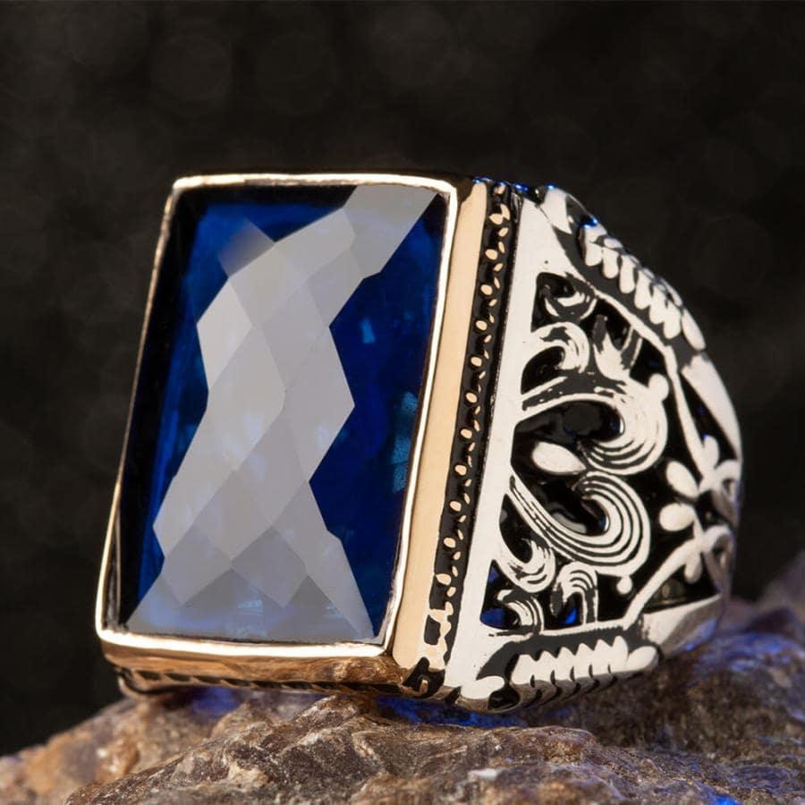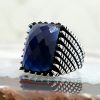 925 Sterling Silver Ring for Men with Blue Zircon Stone