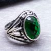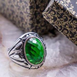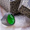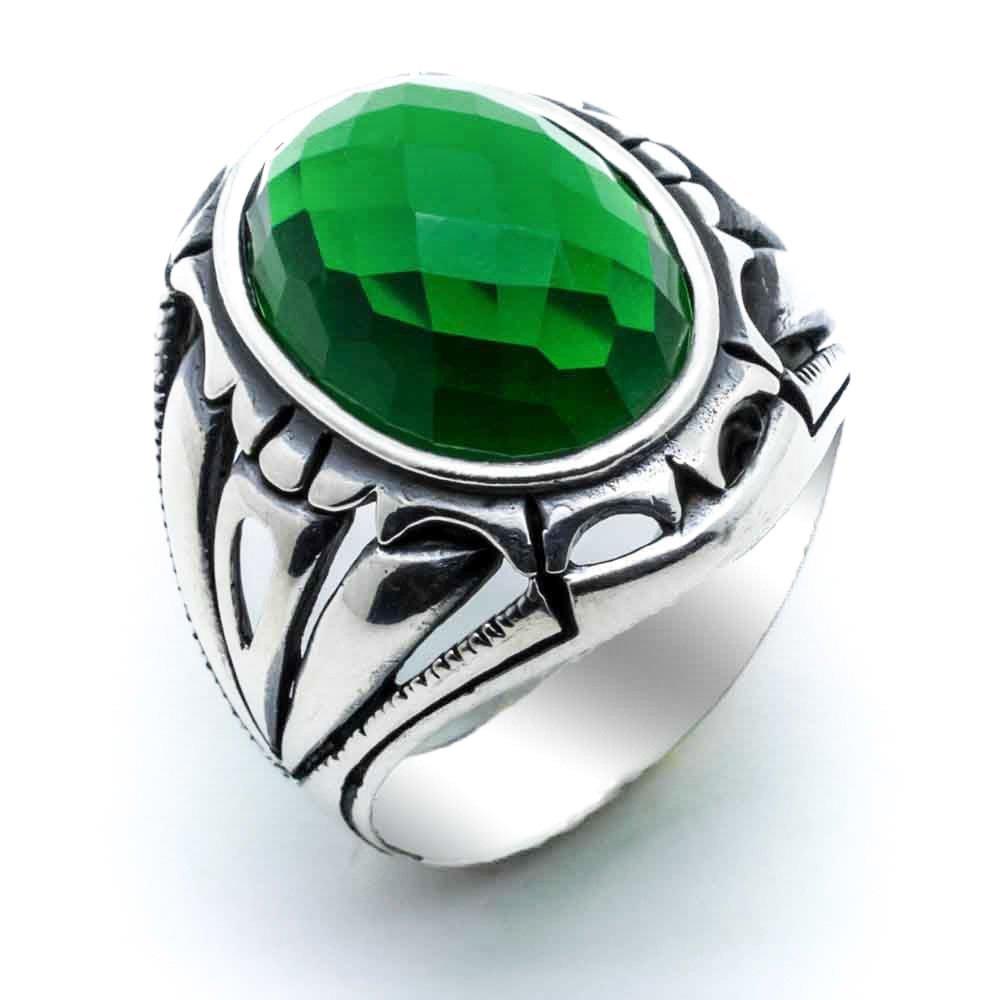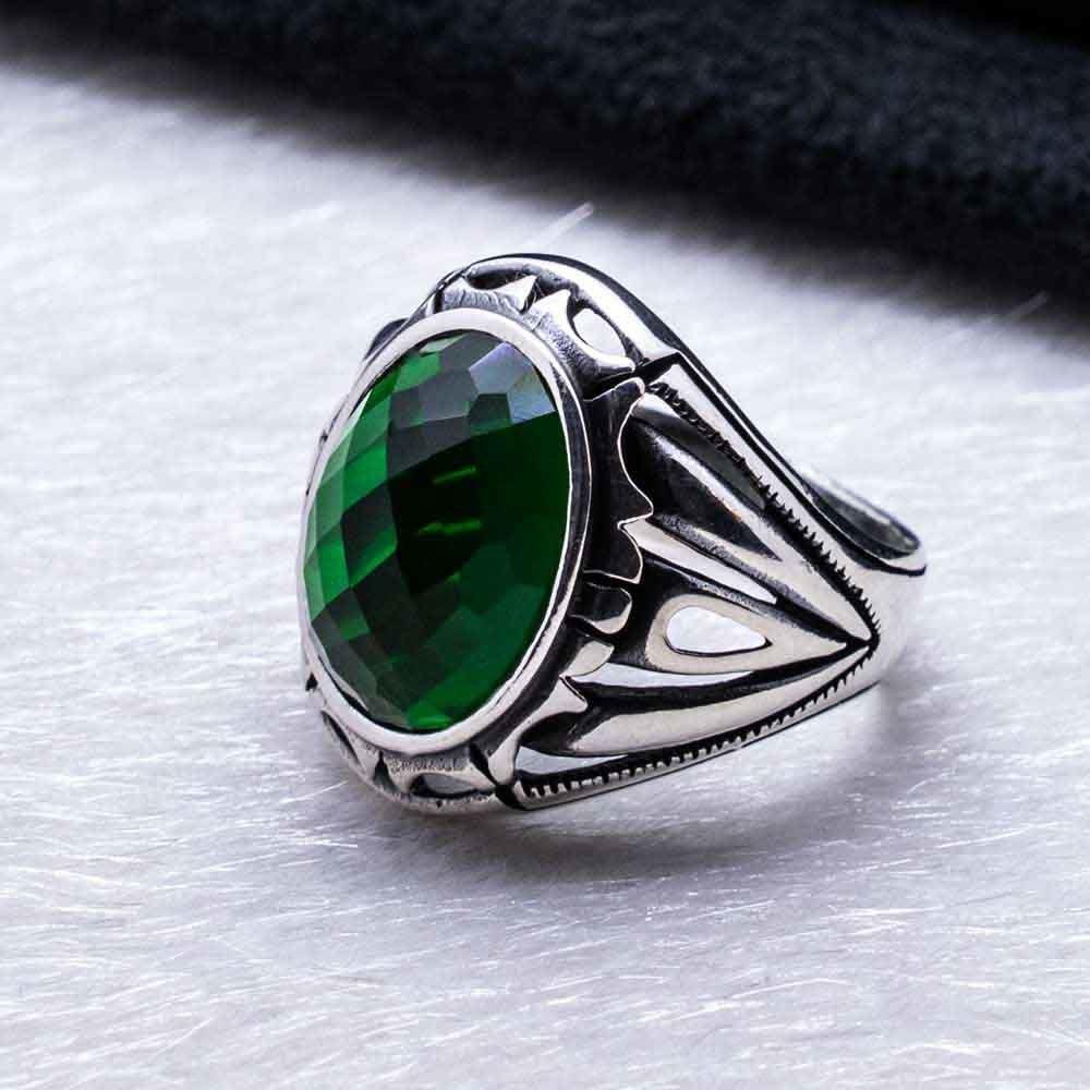 925 Sterling Silver Ring for Men with Green Zircon Stone