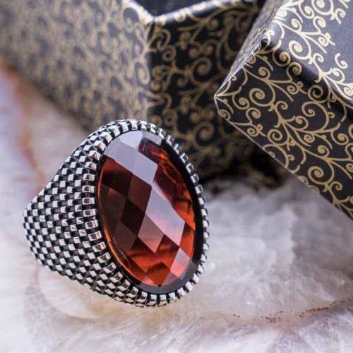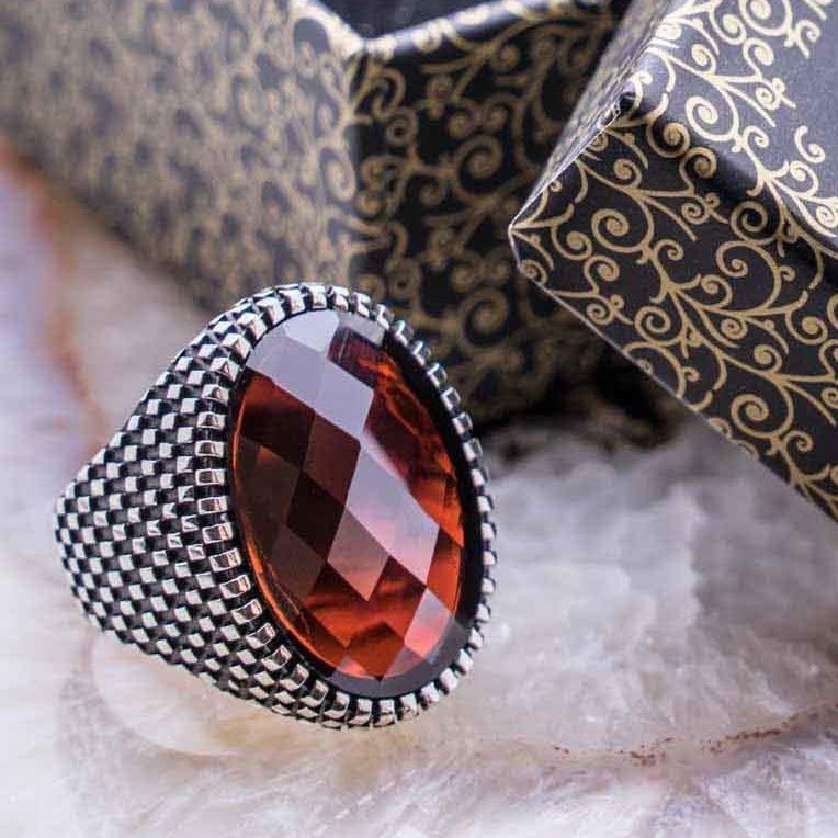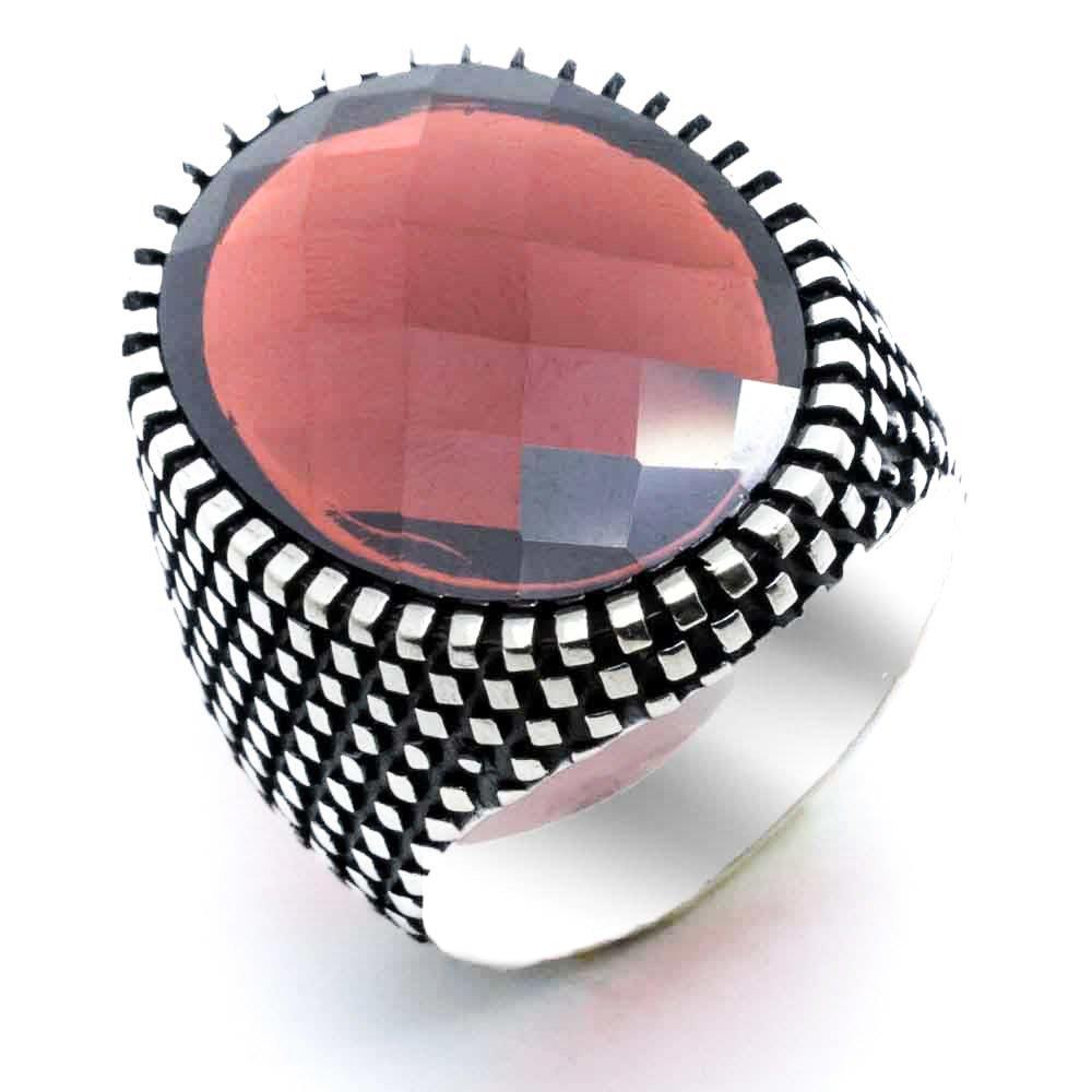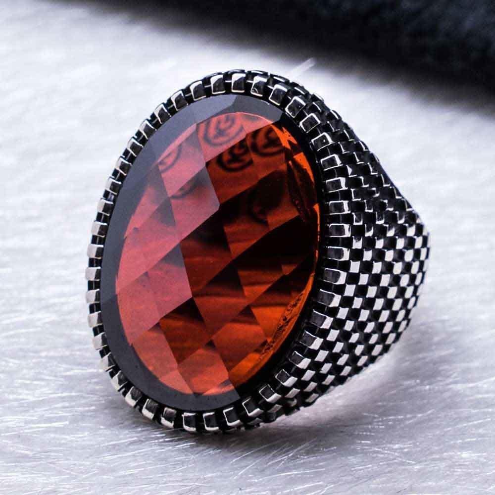 925 Sterling Silver Ring for Men with Red Zircon Stone