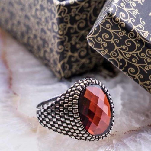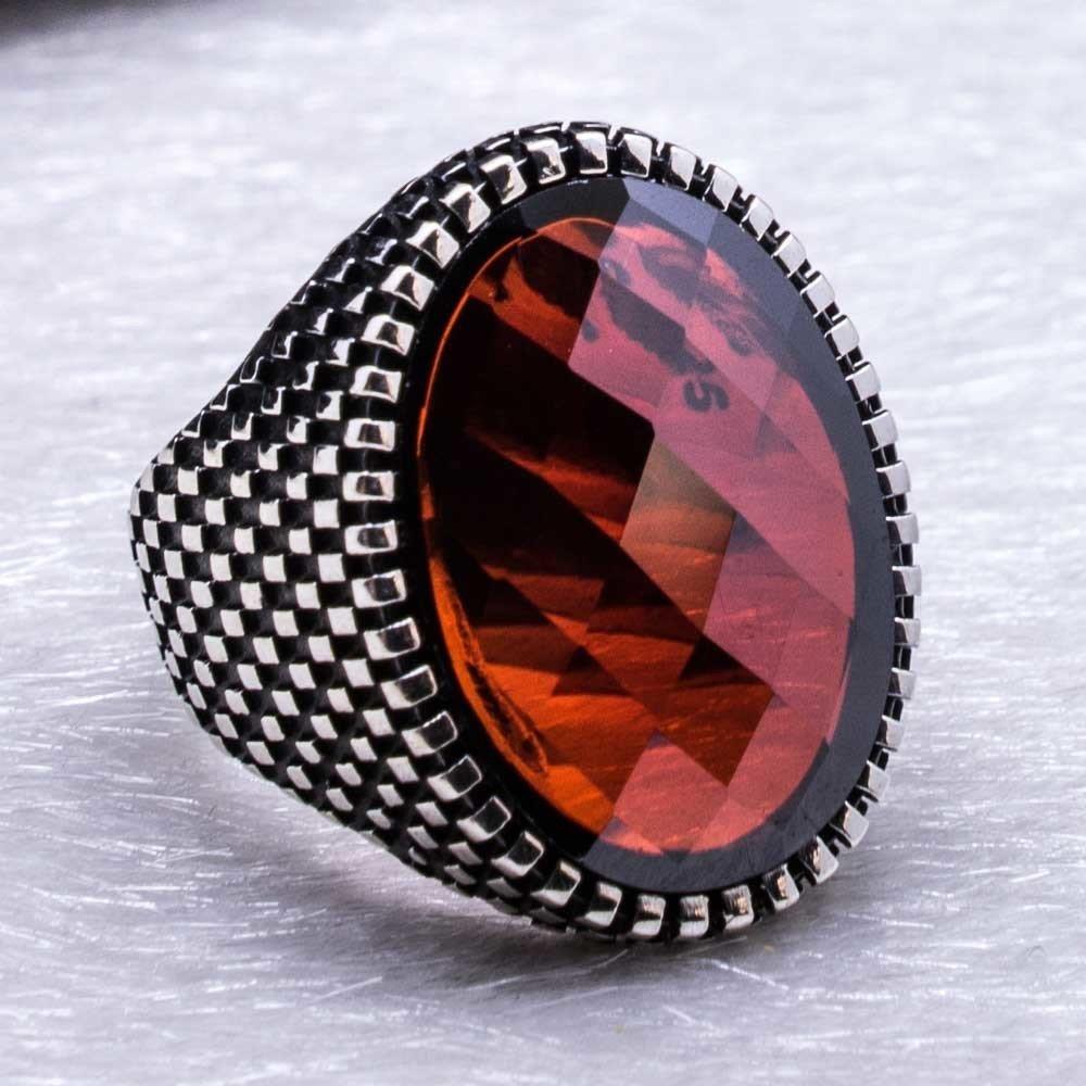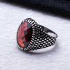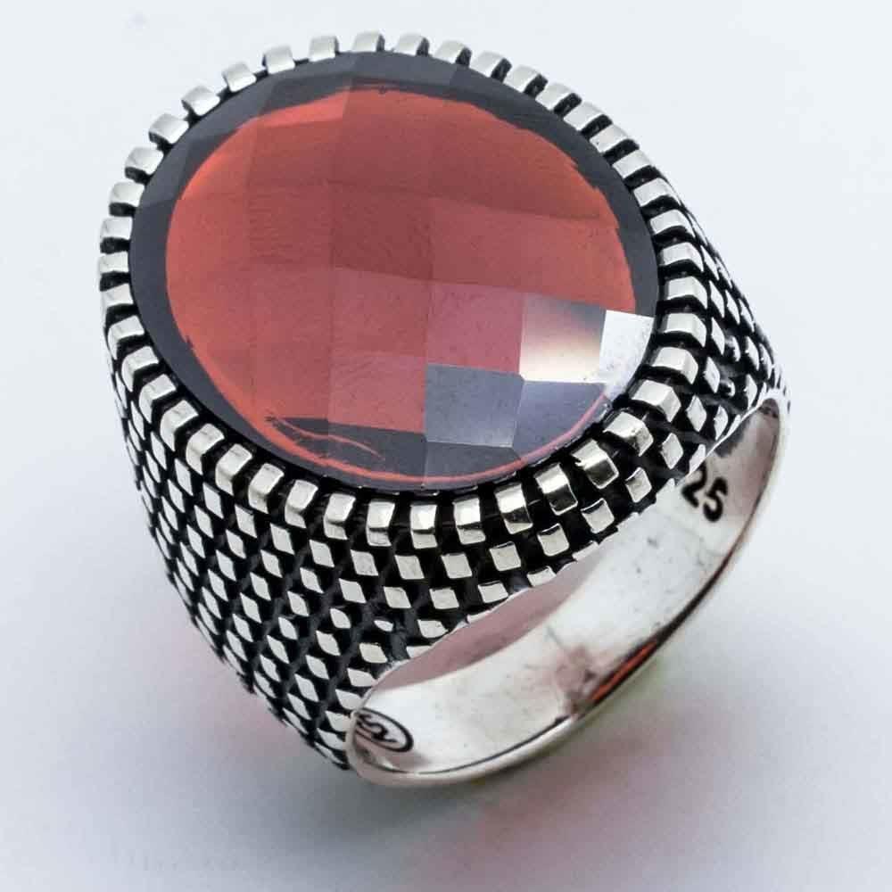 925 Sterling Silver Ring for Men with Red Zircon Stone