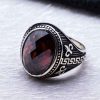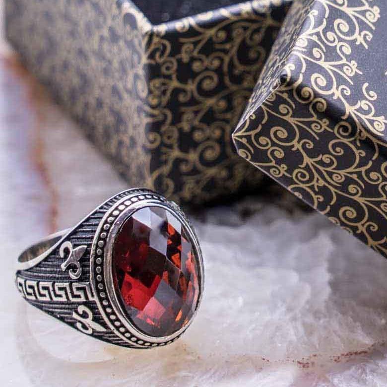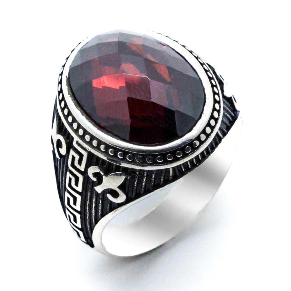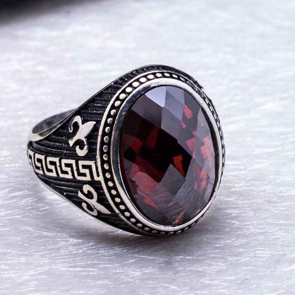 925 Sterling Silver Ring for Men with Red Zircon Stone