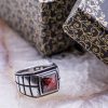 925 Sterling Silver Ring for Men with Red Zircon Stone