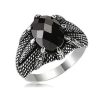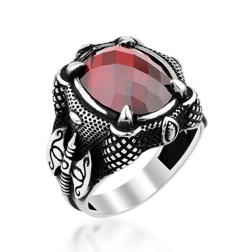 925 Sterling Silver Ring for Men with Red Zircon Stone and Eagle Claw