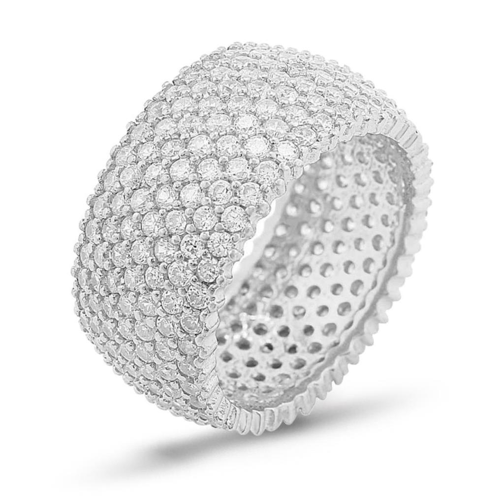 925 Sterling Silver Ring with All Around 7 Line Zircon Stone Design