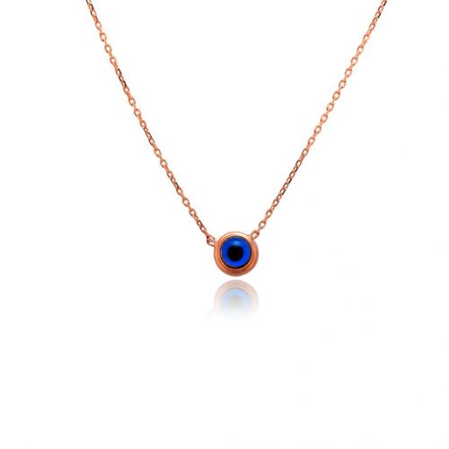 925 Sterling Silver Rose Plated Women Necklace with Evil Eye Design