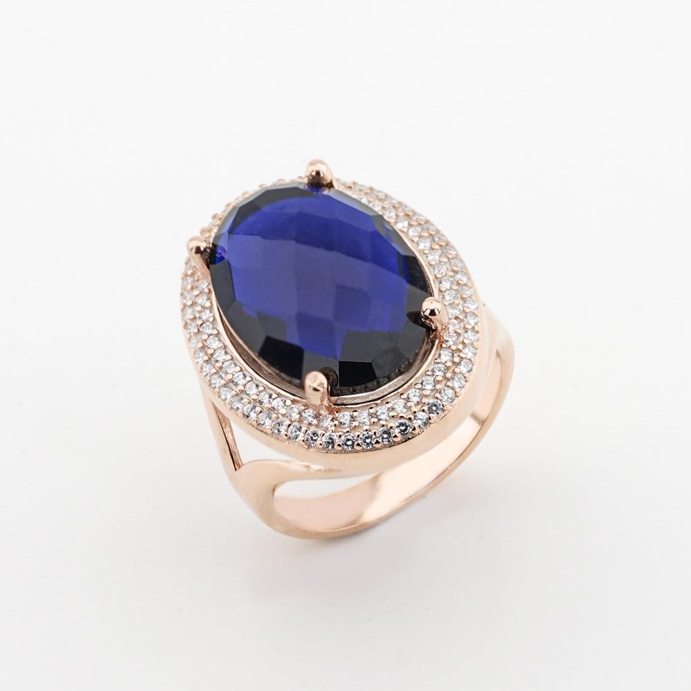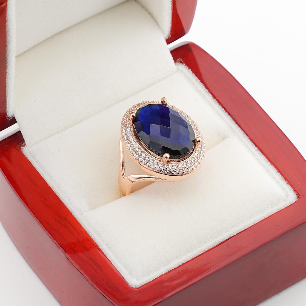 925 Sterling Silver Rose Plated Women Ring with Blue Zircon Stone
