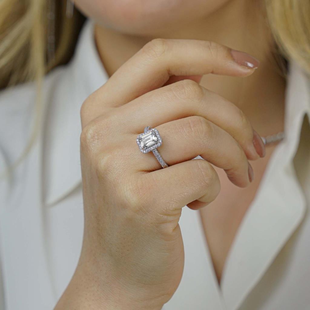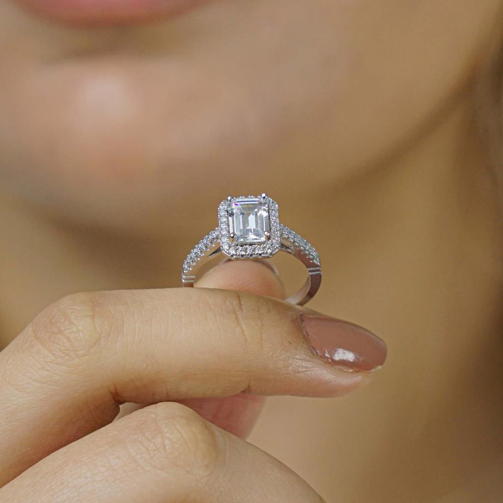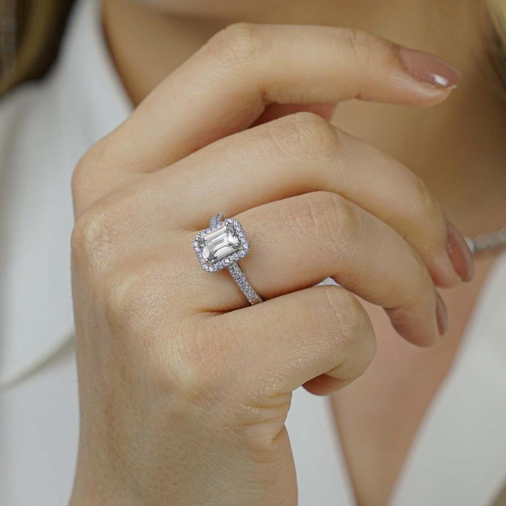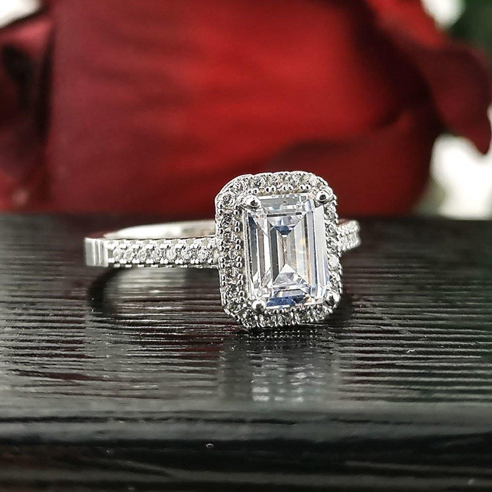 925 Sterling Silver Solitaire Women Ring with Princess Cut Baguette Stone