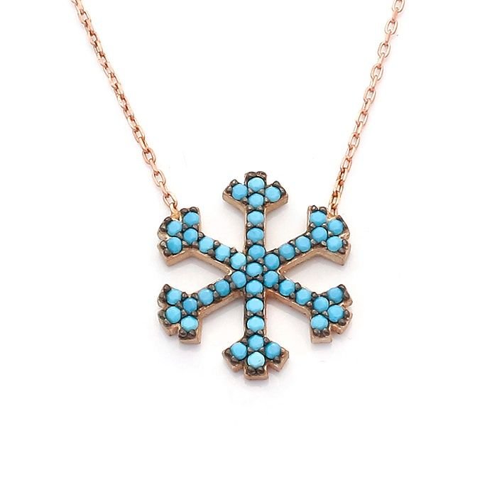 925 Sterling Silver Women Necklace with Snow Design and Nano Turquoise Zircon Stone