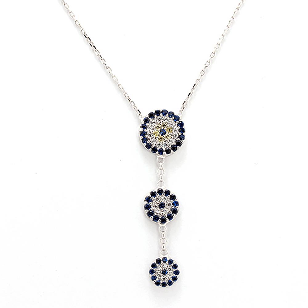 925 Sterling Silver Women Necklace with Zircon Stone and Evil Eye Design