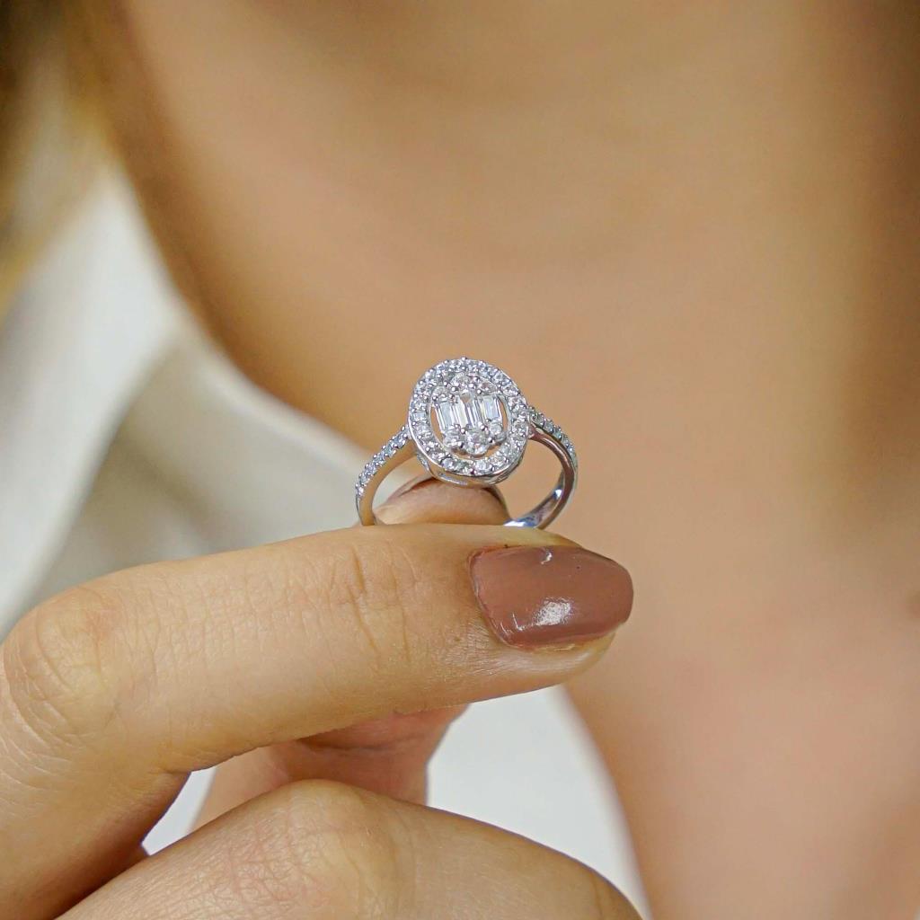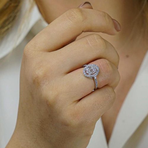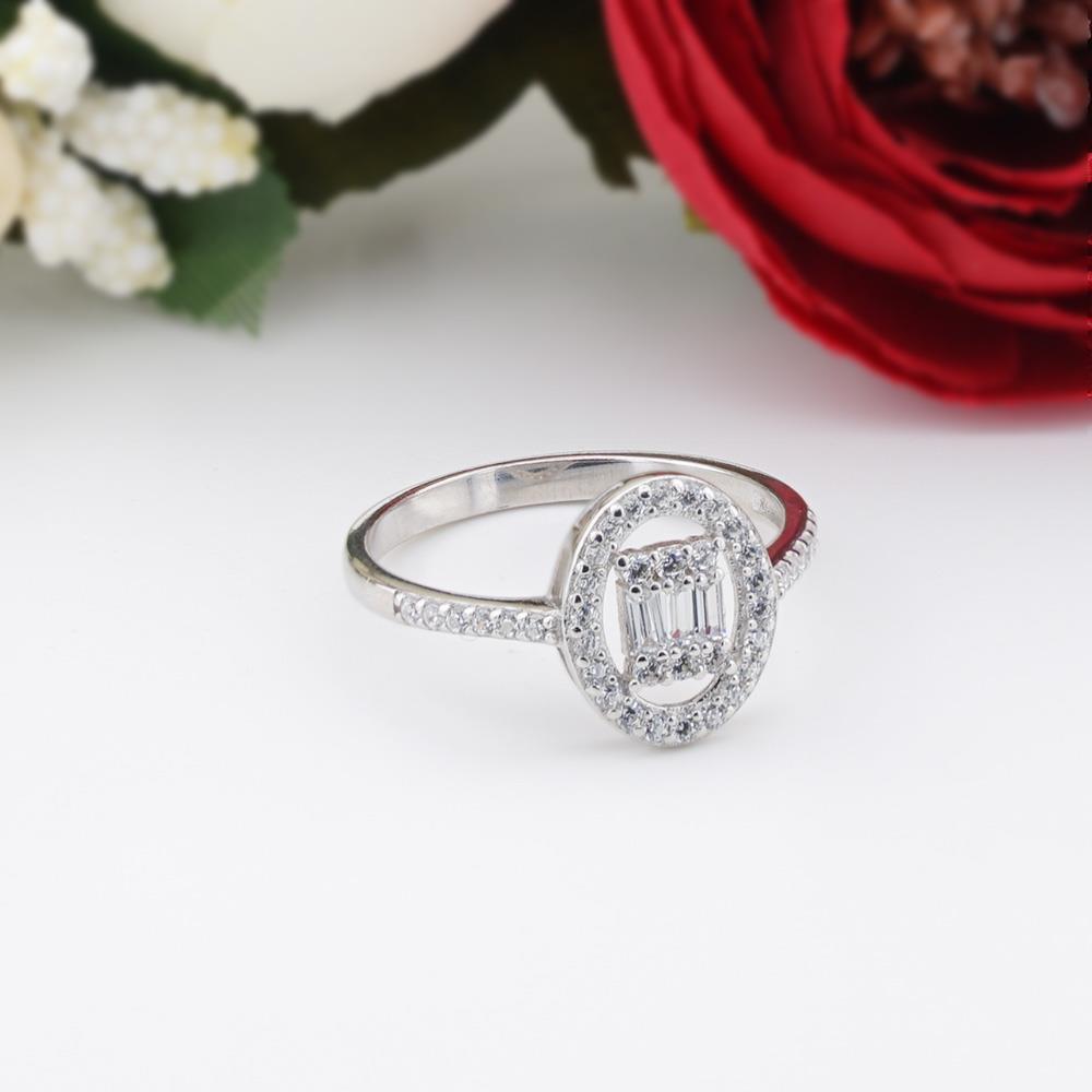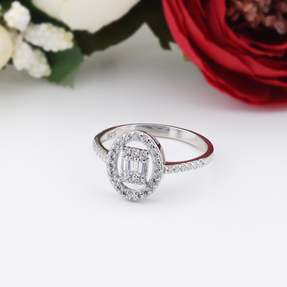 925 Sterling Silver Women Ring with Circular Baguette Zircon Stone