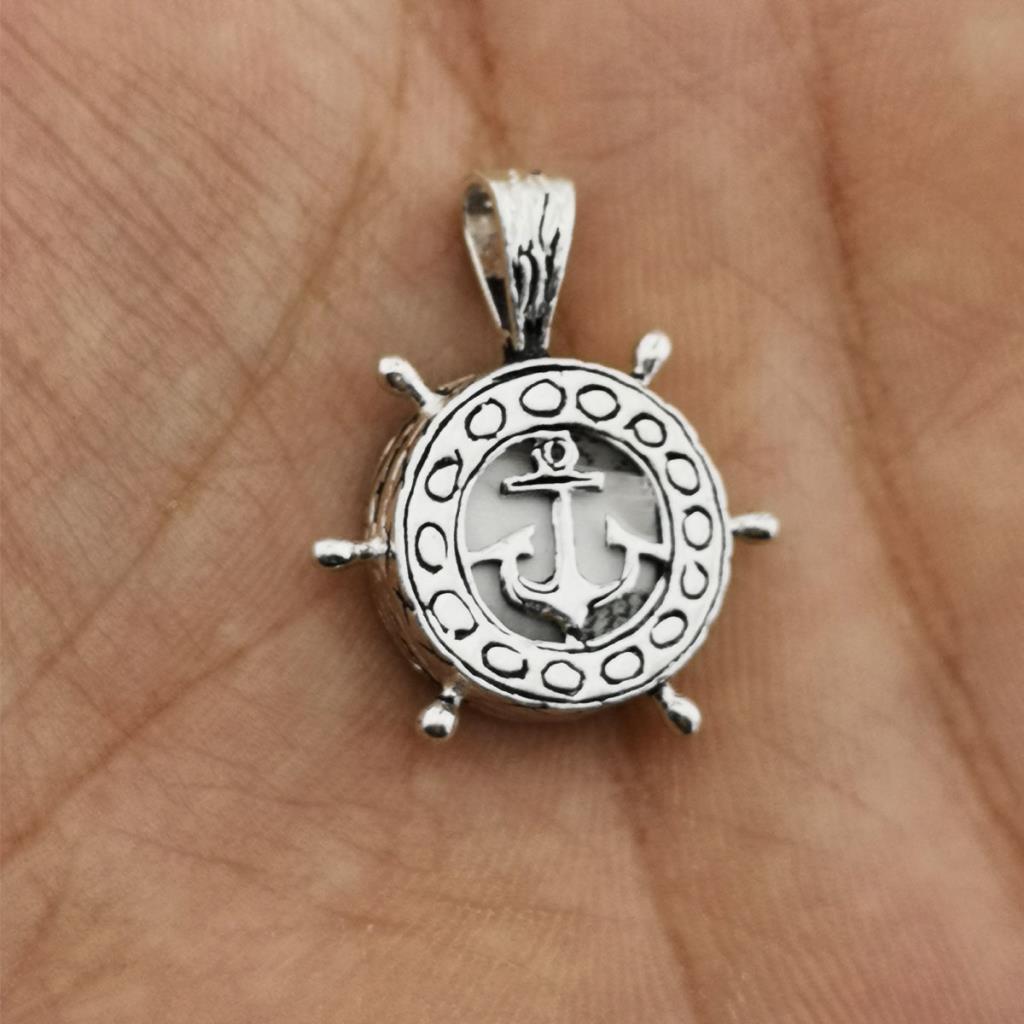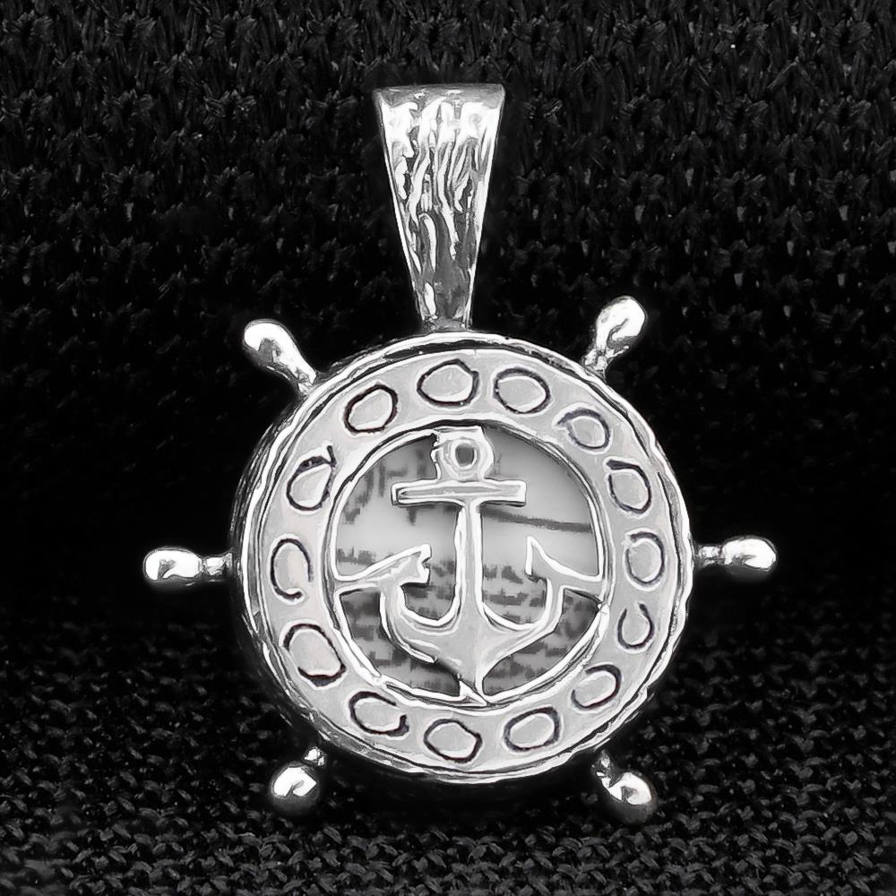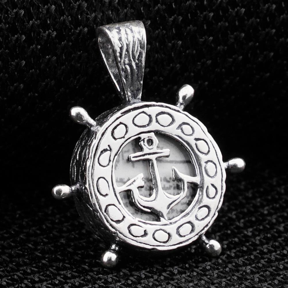 Anchor and Rudder Design Silver Men Pendant