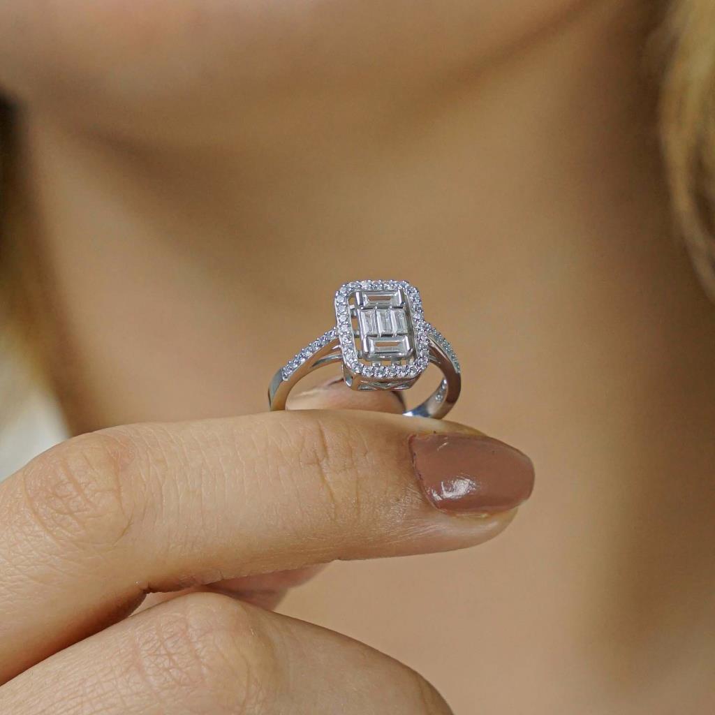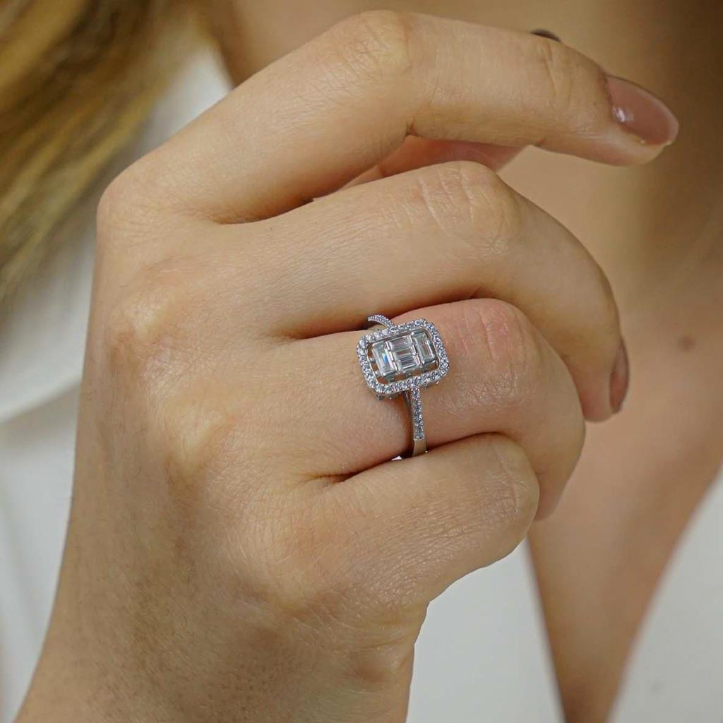 Diamond Model Baguette Stone 925 Sterling Silver Ring