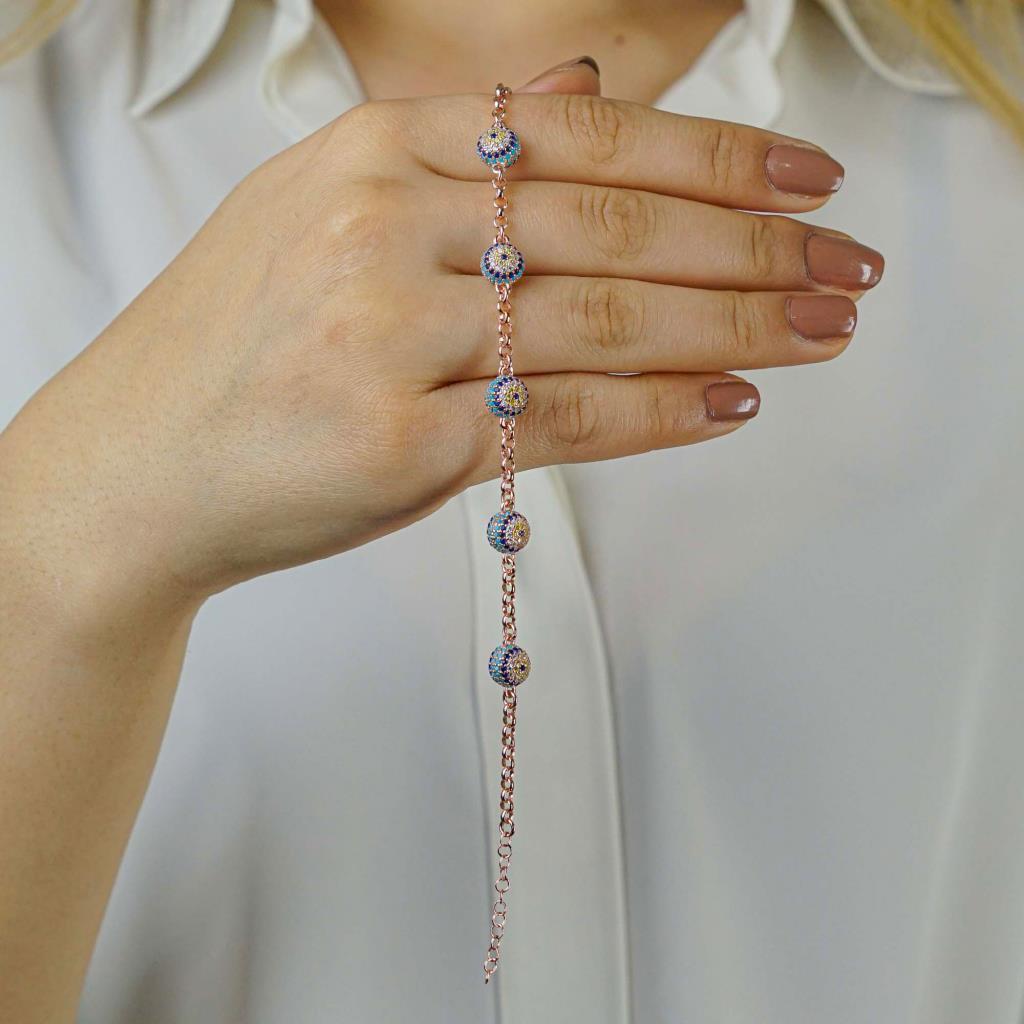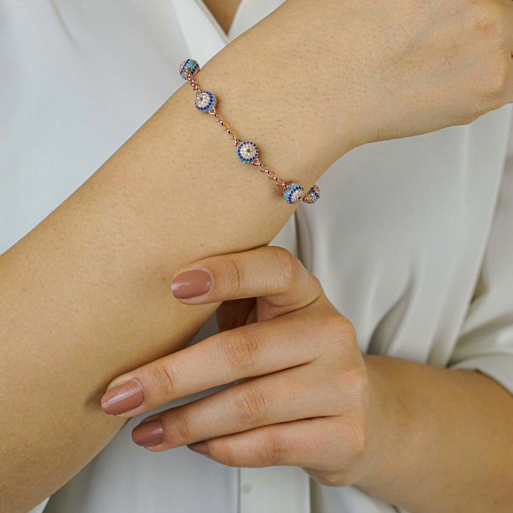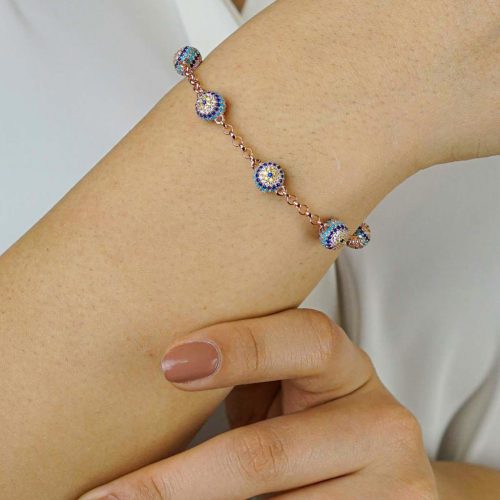 Evil Eye Design Rose Color 925 Sterling Silver Women Bracelet
