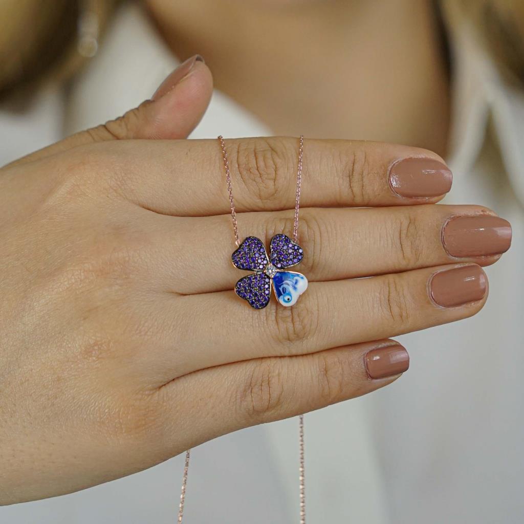 Four Leaf Clover Design 925 Sterling Silver Women Necklace Rose