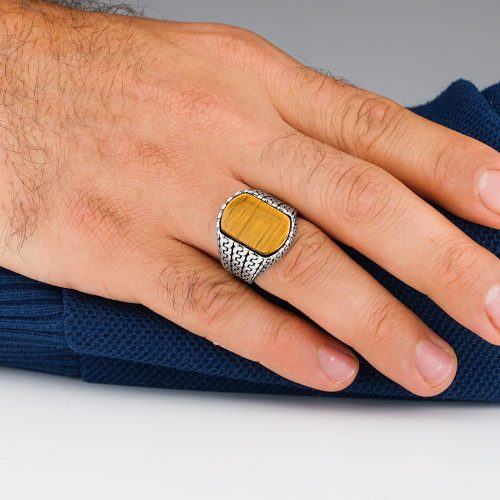 Shiny 925 Sterling Silver Ring with Oval Tiger Eye Stone