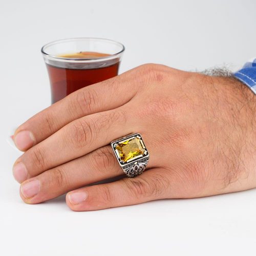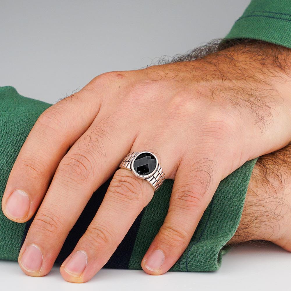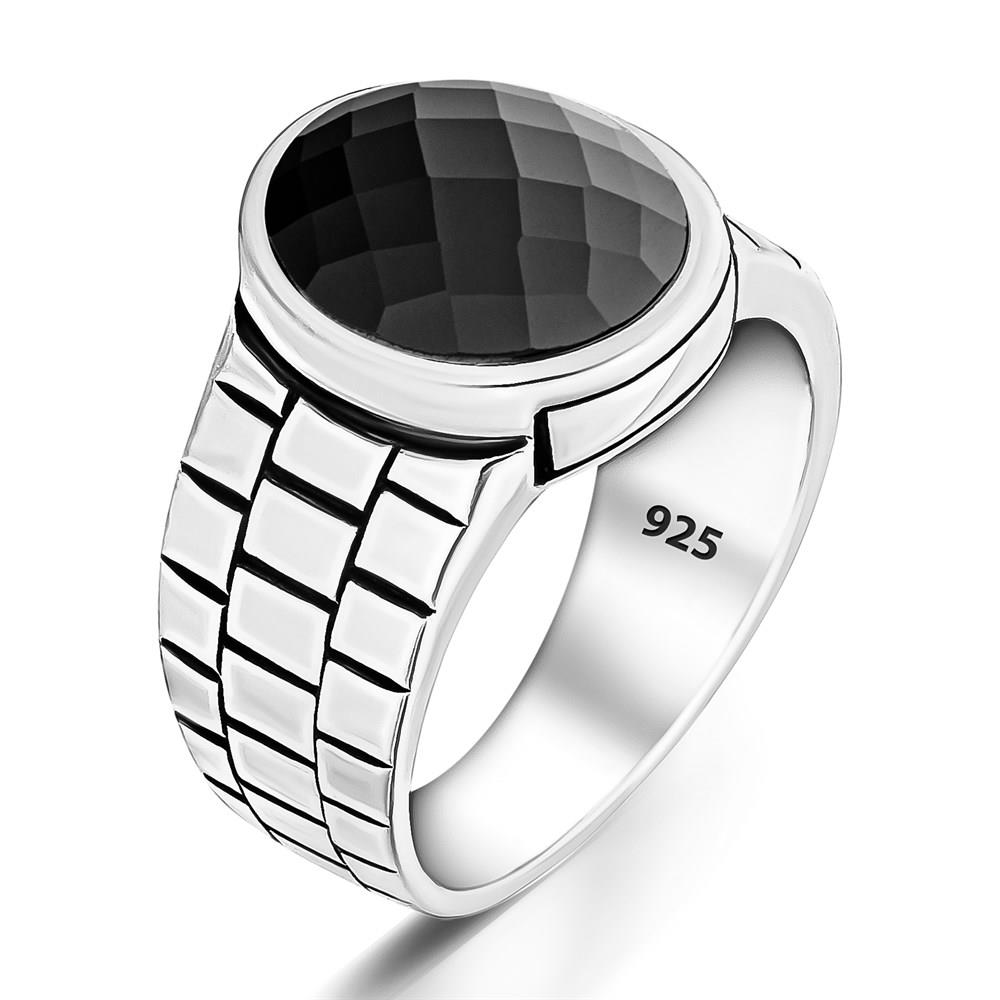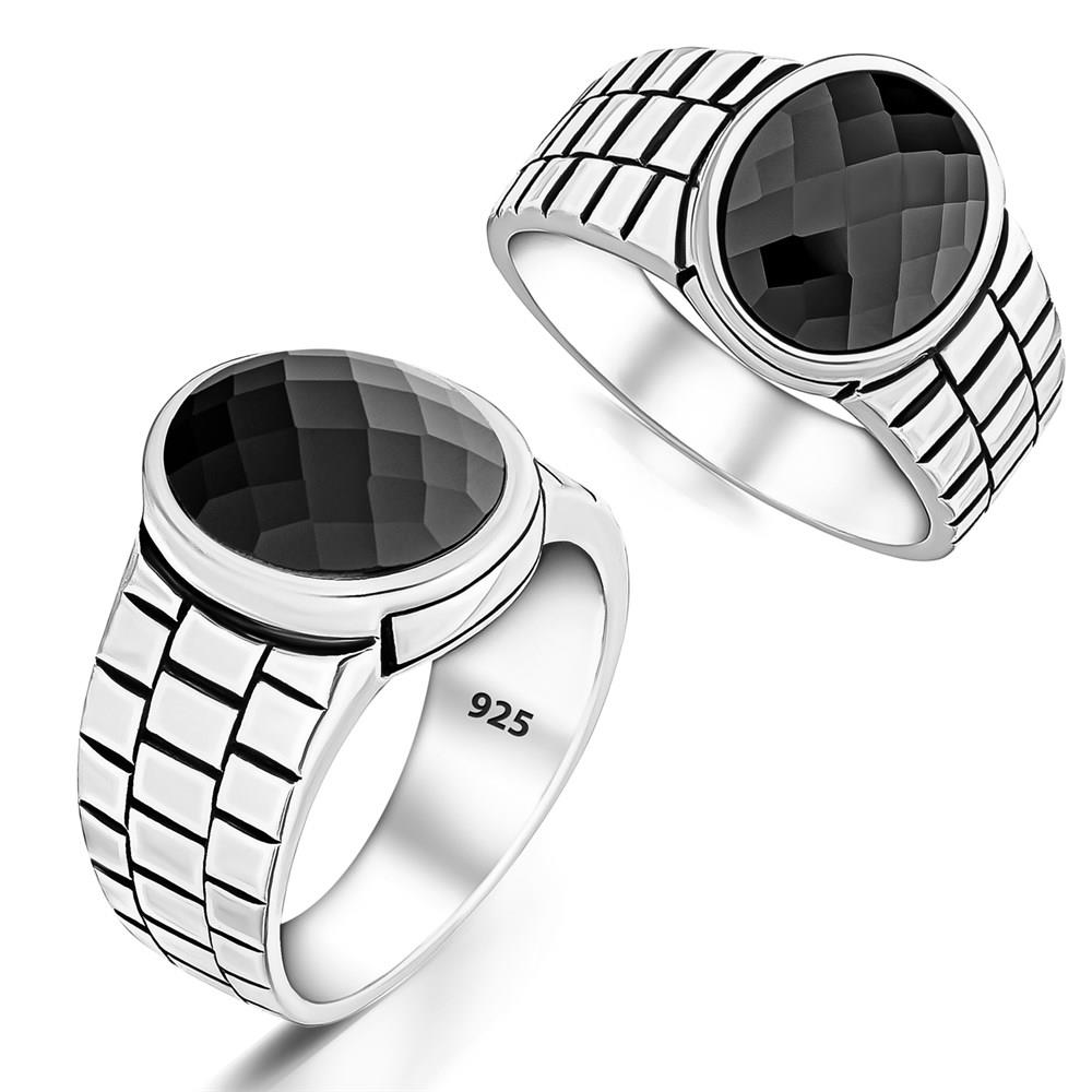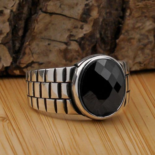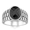 Watch Design Black Zircon Stone 925 Sterling Silver Men Ring