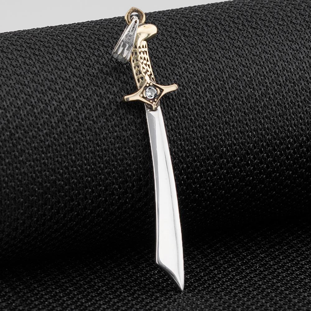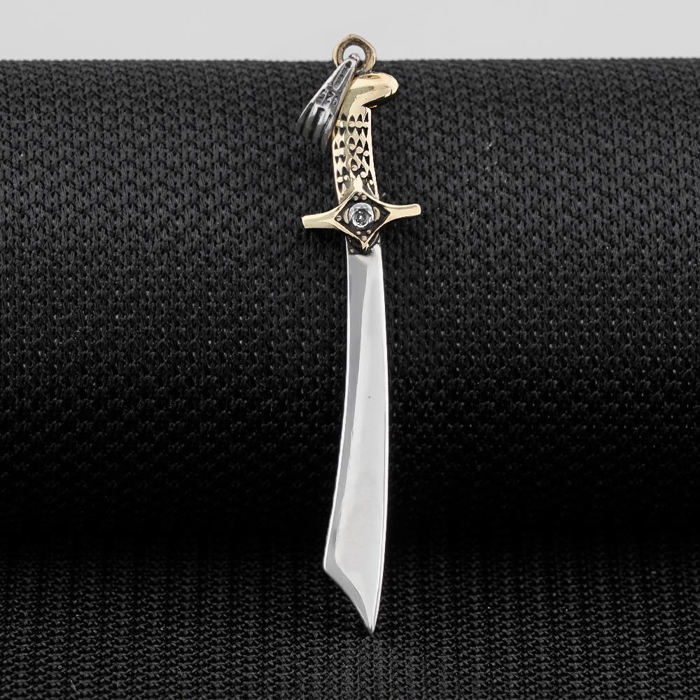White Zircon Stone and Mogol Sword Design 925 Sterling Silver Men Pendant